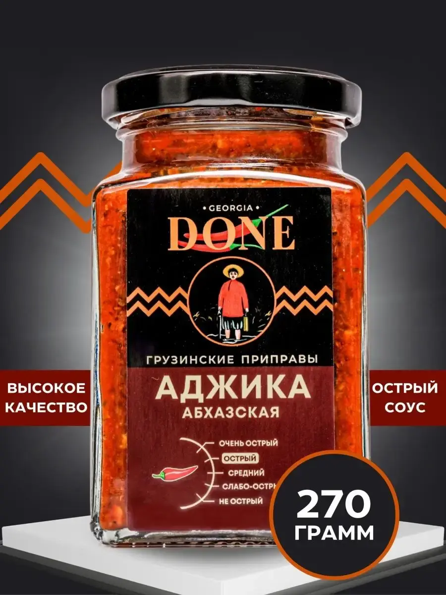 Специя Аджика абхазская - острый, ароматный, пряный грузинский соус для мяса барбекю борща чили гриля и супа харчо. Острая аджика домашняя Грузия идеально сочетается с маринадами для шашлыка соусов блюд кавказкой кухни, супами, мясными закусками, где нужна пикантная острота. Классическая кавказская аджика (перцовая паста) состоит из перетертого острого красного перца, набора пряностей, зеленых трав, чеснока и соли. Соус сравнится с сацибели или ткемали, но самый острый соус из них. Аджика грузинская , как аджика сухая острая и амца натрули кубаночка адыгейская уляпская. Острая приправа обогатит вкус любой еды и станет незаменимым элементом выезда на природу, шашлыки и пикник. Соберите свой набор специй с пряностями и приправами DONE, откройте для себя все вкусы мира . Приправы в банках незаменимые помощники хозяйки или хозяина на кухне, а качество и аромат специй ДОНЕ по праву ценят шеф-повара лучших ресторанов Москвы и регионов. Баночки для специй - прекрасный повод порадовать близких, сделать подарок для подруги, для бабушки, для мамы или сестре. Скоро праздники и наши вкусные подарки станут отличным дополнением новогоднего стола, хороший подарок на новый год подруге, любимому человеку . Теплые эмоции и хорошее настроение обеспечены. Мы будем рады вашим отзывам, фотографиям блюд и будем особенно благодарны, если вы добавите наш бренд в избранное, потому что нам есть чем вас удивить! Выбирайте лучшие грузинские специи!